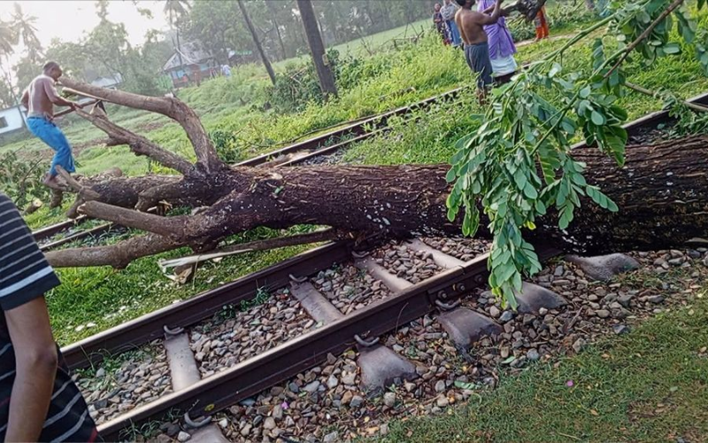 নোয়াখালীতে রেললাইনে গাছ উপড়ে পড়ে ট্রেন চলাচল বন্ধ, উদ্ধার কাজ চলছে