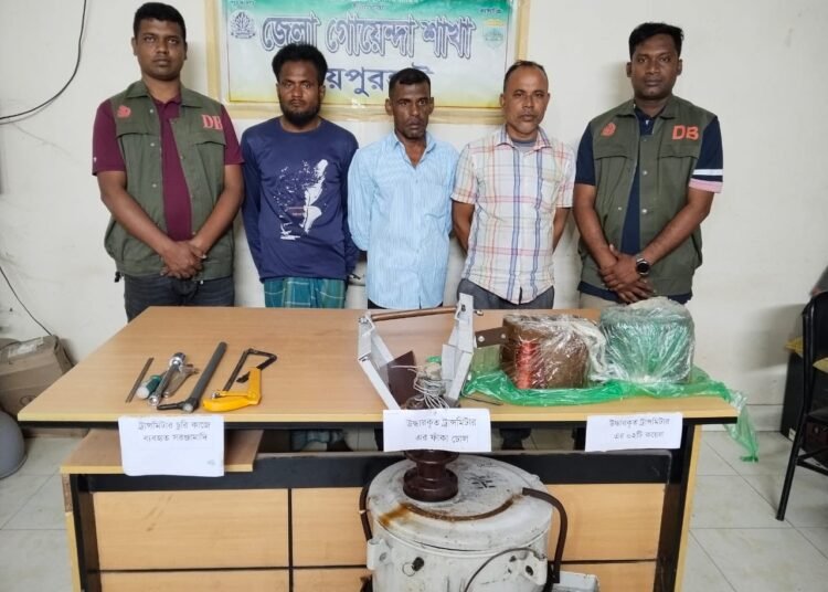 জয়পুরহাট সদর থানাধীন এলাকায় ট্রান্সফরমার চুরির ঘটনায় তিনজনকে গ্রেফতার করেছে জেলা গোয়েন্দা (ডিবি) পুলিশ।