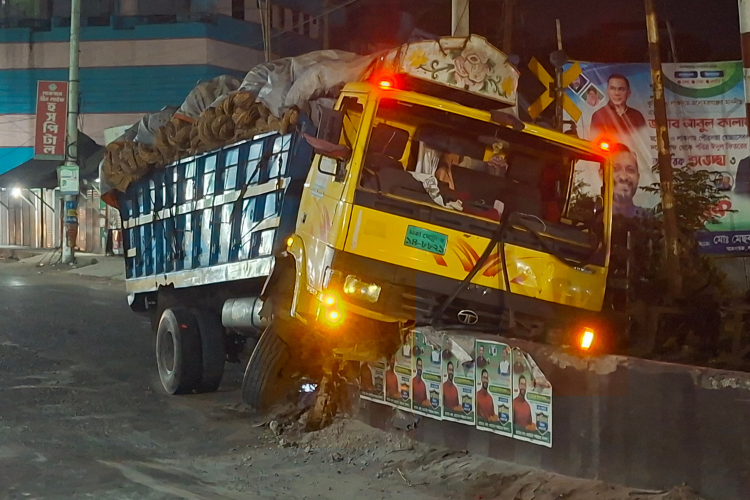 স্থানীয় ও প্রত্যক্ষদর্শী সূত্রে জানা যায়, নোয়াখালীর মাইজদীর কোন্দার হাট থেকে রাত ৮টার দিকে আন্তঃজেলা ওই মালবাহী ট্রাকটি ঢাকার মিরেরবাজারের উদ্দেশে ছেড়ে আসে। রাত সাড়ে ১০টার দিকে ট্রাকটি কুমিল্লার লাকসাম উপজেলার নোয়াখালী রেলগেট এলাকায় পৌঁছালে চালক হঠাৎ নিয়ন্ত্রণ হারিয়ে ফেলেন। এ সময় দ্রুতগতির ভারী ট্রাকটি চারজন আরোহী নিয়ে সজোরে রেলক্রসিংয়ের ডিভাইডারের ওপর উঠে যায়।