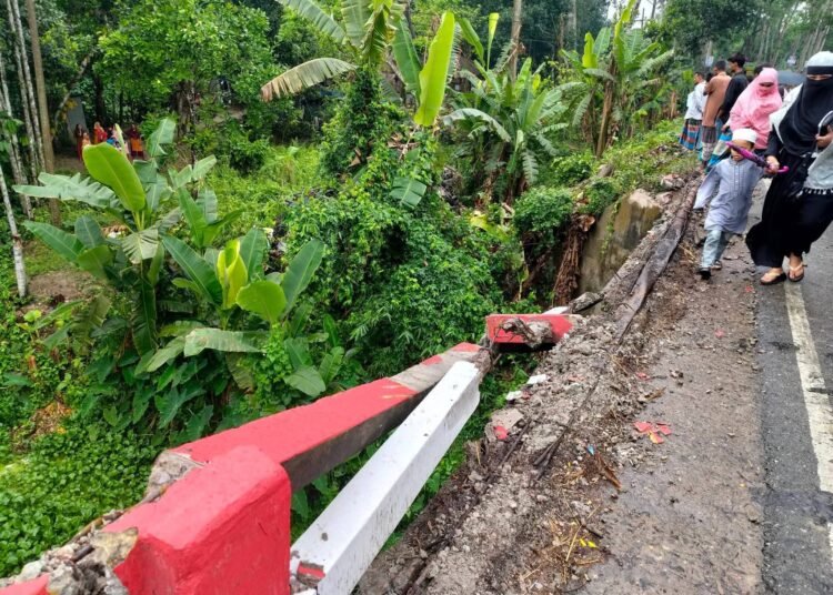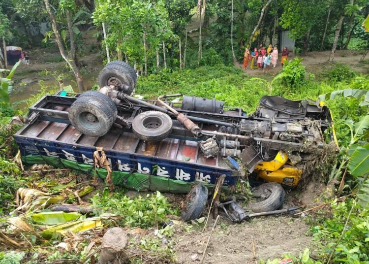 প্রত্যক্ষদর্শীরা জানান, বরিশালগামী ট্রাকটি নীলখোলা ব্রিজ পার হওয়ার সময় হঠাৎ নিয়ন্ত্রণ হারিয়ে ব্রিজের রেলিং ভেঙে নিচের খাদে পড়ে যায়। দুর্ঘটনার পর স্থানীয়রা দ্রুত ঘটনাস্থলে গিয়ে আহত চালক ও হেলপারকে উদ্ধার করেন। পরে তারা স্থানীয়ভাবে চিকিৎসা নেন।