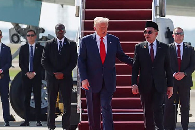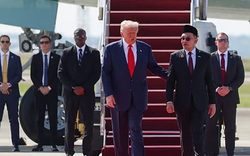 ট্রাম্প কুয়ালালামপুর আন্তর্জাতিক বিমানবন্দরে পৌঁছালে মালয়েশিয়ার প্রধানমন্ত্রী আনোয়ার ইব্রাহিম তাকে স্বাগত জানান। পরে তিনি দেশটির মন্ত্রী ও শীর্ষ সরকারি কর্মকর্তাদের সঙ্গে শুভেচ্ছা বিনিময় করেন। ট্রাম্পের প্রথম কর্মসূচি হিসেবে থাইল্যান্ড ও কাম্বোডিয়ার সম্পর্ক স্বাভাবিকীকরণ চুক্তি স্বাক্ষর অনুষ্ঠানে উপস্থিত হওয়া।