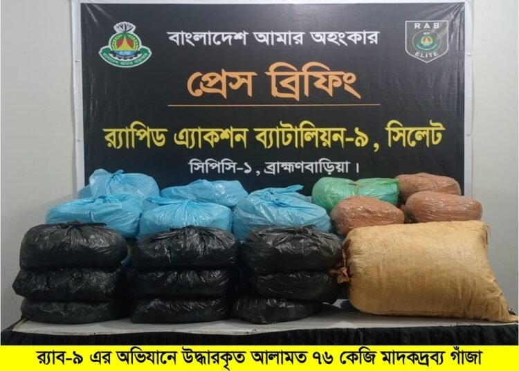 ব্রাহ্মণবাড়িয়ায় র্যাব ৯ এর পৃথক অভিযানে ৭৬ কেজি গাঁজাসহ দুইজনকে গ্রেফতার করেছে।রোববার ভোর চারটার দিকে বিজয়নগর ও সকাল ৯টার দিকে সদর উপজেলায় পৃথক অভিযান পরিচালনা করে গাঁজাসহ তাদের গ্রেফতার করা হয়।