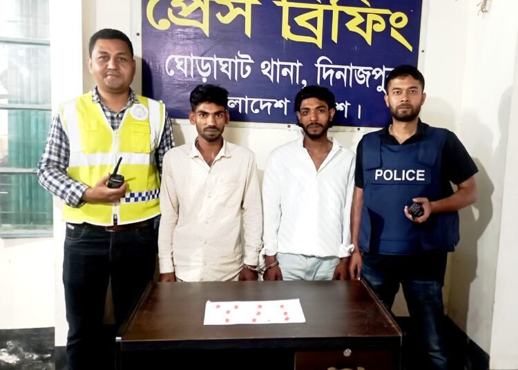 দিনাজপুরের ঘোড়াঘাটে ঈদকে সামনে রেখে মাদক বিক্রির সময় দুই সহোদরকে একশ দুই পিচ ইয়াবাসহ গ্রেপ্তার করেছে থানা পুলিশ। বুধবার (১৮ মার্চ) বিকাল ৪ টার দিকে উপজেলার রাণীগঞ্জ বাজারে এলাকা থেকে তাদের গ্রেপ্তার করা হয়।
