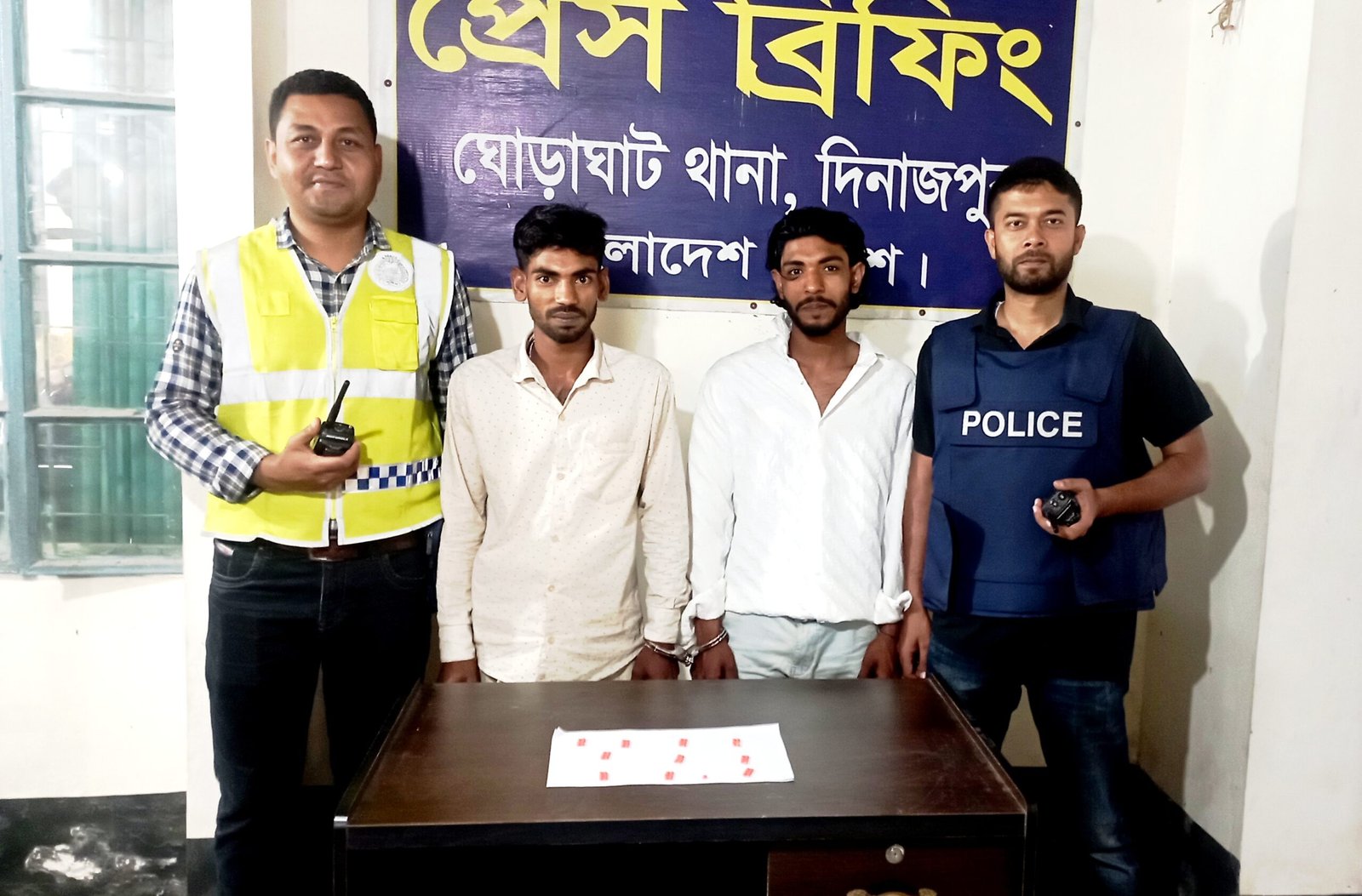 গ্রেপ্তারকৃতরা হলেন, উপজেলার জালকাটা মগলিসপুর এলাকার আব্দুল হালিমের দুই ছেলে মওলা মিয়া (২৫) এবং আব্দুল আলিম (২২)।