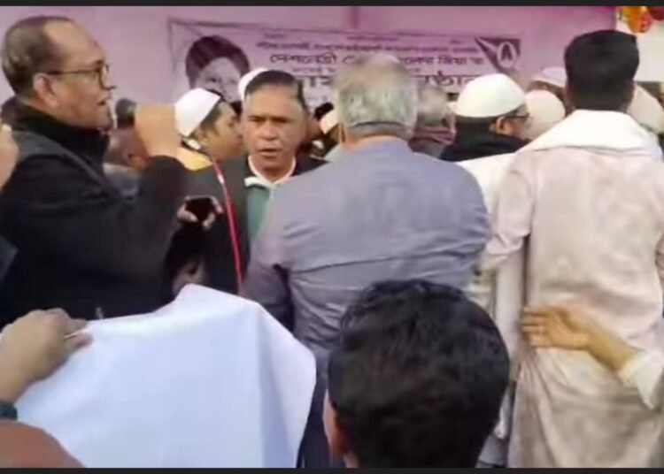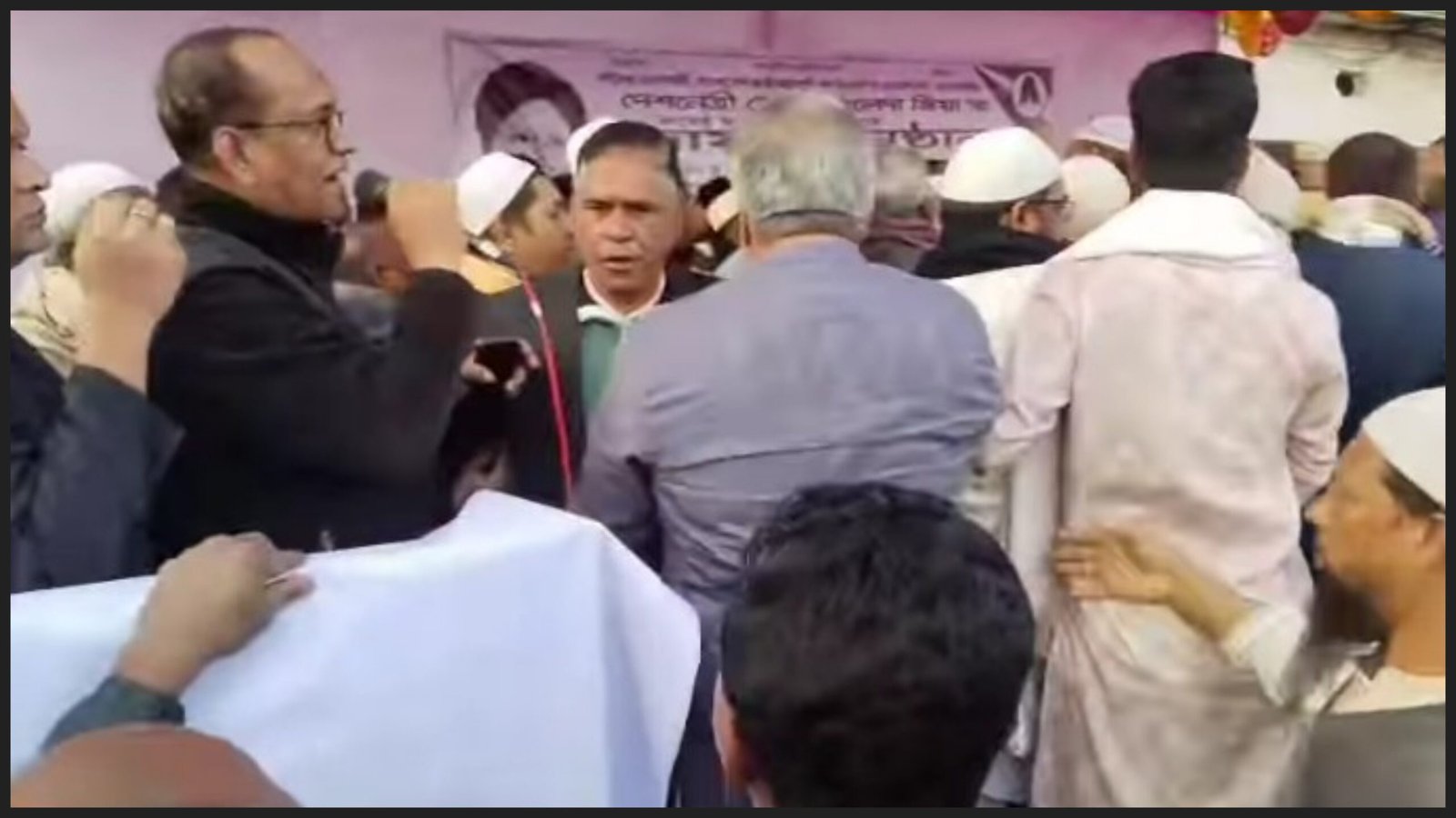 ঝালকাঠির নলছিটিতে বেগম খালেদা জিয়ার রুহের মাগফেরাত কামনায় আয়োজিত বিএনপির দোয়া ও মোনাজাত অনুষ্ঠানে বক্তব্য দেওয়া নিয়ে হট্টগোল মঞ্চ দখল ও হাতাহাতির ঘটনা ঘটেছে। প্রায় ১০ হাজার নেতাকর্মীর উপস্থিতিতে প্রকাশ্যে সিনিয়র নেতাদের অপমান ও অশালীন গালাগালির ঘটনায় হতভম্ব হয়েছেন কেন্দ্রীয় ও জেলা পর্যায়ের নেতারা।