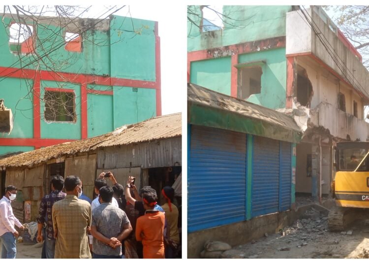 সুনামগঞ্জের মধ্যনগর উপজেলা সদরে সরকারী নিয়ম বর্হিভূত ভাবে ভবণ নির্মাণের দায়ে অবৈধ স্থাপনা উচ্ছেদ অভিযান করেছে উপজেলা প্রশাসন।