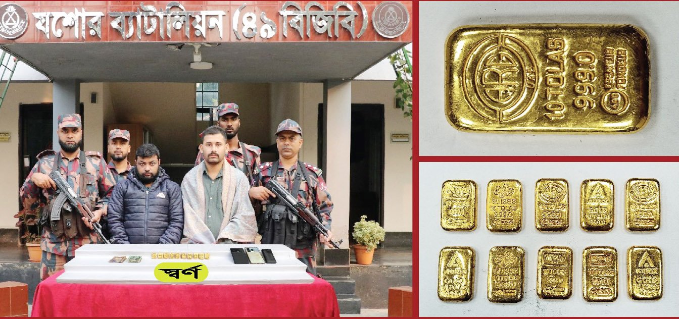 যশোরে ১০টি স্বর্ণেরবারসহ দুই পাচারকারী আটক