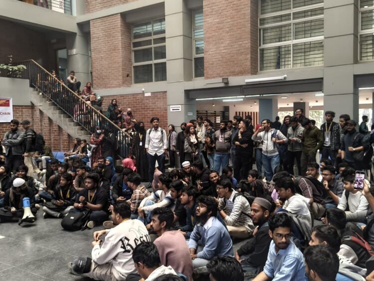 রবিবার সকালে বিশ্ববিদ্যালয়ের প্লাজা এলাকায় শত শত শিক্ষার্থী জড়ো হয়ে বিক্ষোভ শুরু করেন। শিক্ষার্থীদের অভিযোগ, বেসিক সায়েন্স অ্যান্ড হিউম্যানিটিজ বিভাগের সহকারী অধ্যাপক লায়েকা বশীর দীর্ঘদিন ধরে হিজাব ও নিকাব পরিহিত ছাত্রীদের হেনস্তা করে আসছিলেন। নিকাব খুলতে বাধ্য করা, ধর্মীয় অনুভূতিতে আঘাত এবং পরীক্ষায় বৈষম্যমূলক গ্রেডিং দেওয়ার মতো গুরুতর অভিযোগ তোলেন তারা।