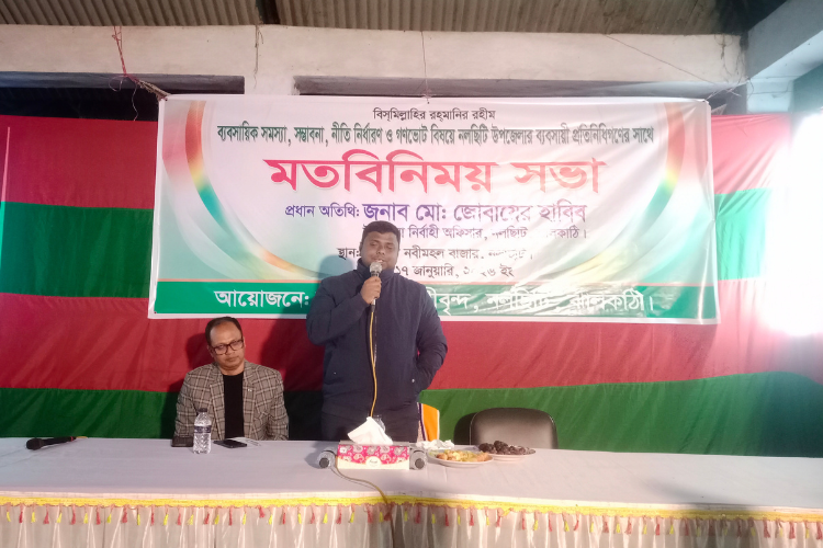 নল‌ছি‌টি‌তে গণ‌ভোট বিষ‌য়ে ব‌্যবসা‌য়ি‌দের সা‌থে মত‌ বি‌নিময় সভা কর‌লেন ইউএনও