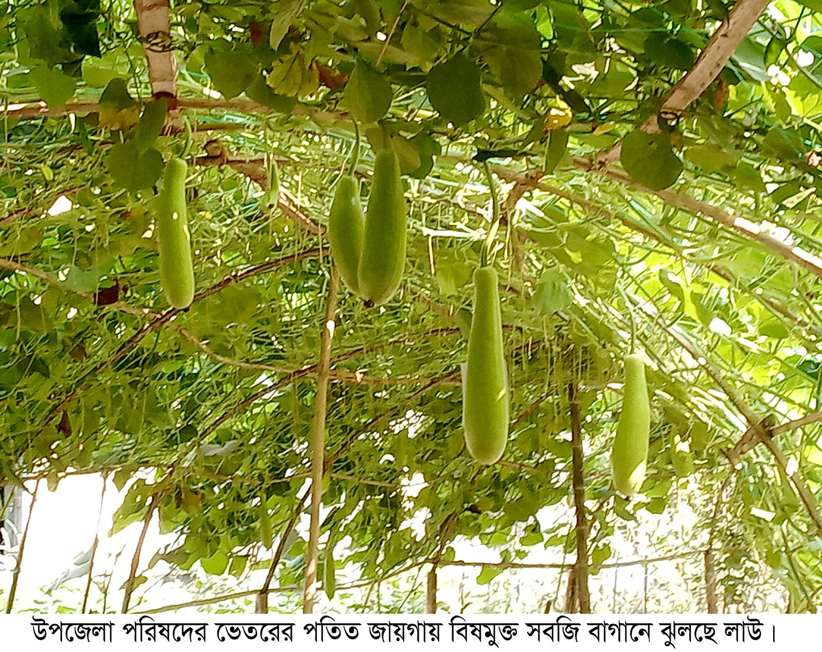 উপজেলা কৃষি বিভাগের সহায়তায় উপজেলা নির্বাহী কর্মকর্তা (ইউএনও) খাদিজা আক্তার এ সবজি বাগান গড়ে তুলে হচ্ছেন প্রশংসিত।ঘুরে দেখা গেছে, উপজেলা নির্বাহী কর্মকর্তা (ইউএনও্#৩৯;)র বাস ভবনের সামনে ও উপজেলা পরিষদের ভেতরে পতিত জায়গাটি এখন নানা রকমের শাক-সবজিতে ভরা। যেখানে ছিল ঝোপঝাড় আর মশাদের আনাগোনা সেখানে আজ পরিষ্কার পরিচ্ছন্ন করে কৃষি বাগানে পরিণত হয়েছে। এখানে লউ,পুঁইশাক, কলমি শাক,লালশাক, সিম,করলা,ঢেঁড়স, টমেটো বরবটি মরিচ আদা বেগুনসহ নানা ধরনের শাক-সবজির চাষ করা হয়েছে। এসব সবজি চাষে ব্যবহার করা হয়নি কোন ধরনের কীটনাশক। শুধুমাত্র জৈব সার ব্যবহার করে সম্পূর্ণ বিষমুক্ত শাক-সবজি উৎপাদন করা হচ্ছে।