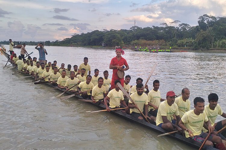 উজিরপুর উপজেলা প্রশাসন ও উন্নয়ন সংস্থা আভাস এর যৌথ আয়োজনে, এবং বাংলাদেশ জাতীয় জাদুঘরের সহযোগিতায় আয়োজিত এ প্রতিযোগিতাকে ঘিরে সকাল থেকেই নদীর দুই তীরে উপচে পড়ে জনস্রোত। নারীরা পরেছেন রঙিন শাড়ি, শিশুরা হাতে জাতীয় পতাকা, নদীর ধারে বসেছে মেলা— সব মিলিয়ে পুরো উজিরপুর যেন পরিণত হয়েছে এক প্রাণের উৎসবে।