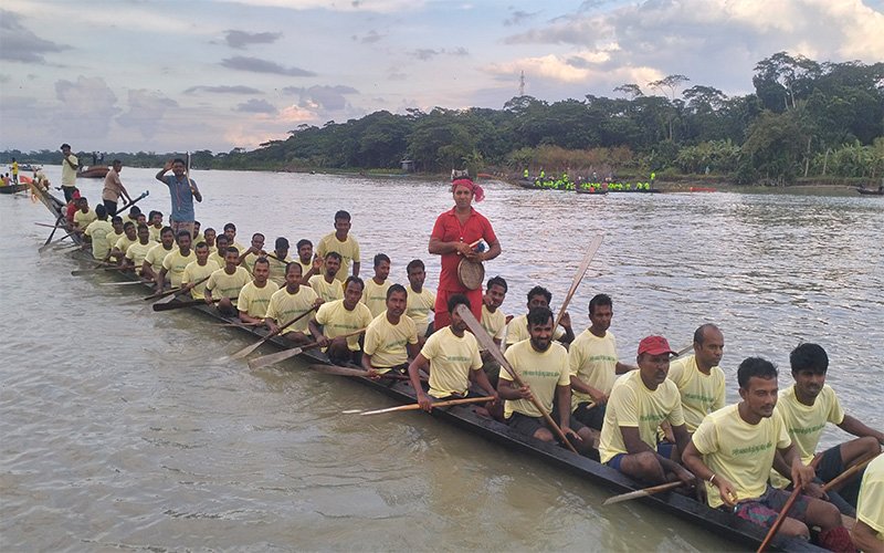 উজিরপুর উপজেলা প্রশাসন ও উন্নয়ন সংস্থা আভাস এর যৌথ আয়োজনে, এবং বাংলাদেশ জাতীয় জাদুঘরের সহযোগিতায় আয়োজিত এ প্রতিযোগিতাকে ঘিরে সকাল থেকেই নদীর দুই তীরে উপচে পড়ে জনস্রোত। নারীরা পরেছেন রঙিন শাড়ি, শিশুরা হাতে জাতীয় পতাকা, নদীর ধারে বসেছে মেলা— সব মিলিয়ে পুরো উজিরপুর যেন পরিণত হয়েছে এক প্রাণের উৎসবে।