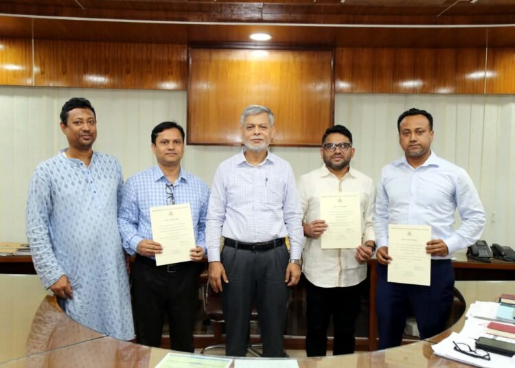 মঙ্গলবার (২৪ ফেব্রুয়ারি ২০২৬) বিশ্ববিদ্যালয়ের ভাইস-চ্যান্সেলরের কার্যালয়ে আয়োজিত এক সংক্ষিপ্ত অনুষ্ঠানে উপাচার্য অধ্যাপক ড. মোঃ আনোয়ারুল আজীম আখন্দ আনুষ্ঠানিকভাবে তাঁদের হাতে পিএইচডি ডিগ্রির সনদ তুলে দেন।