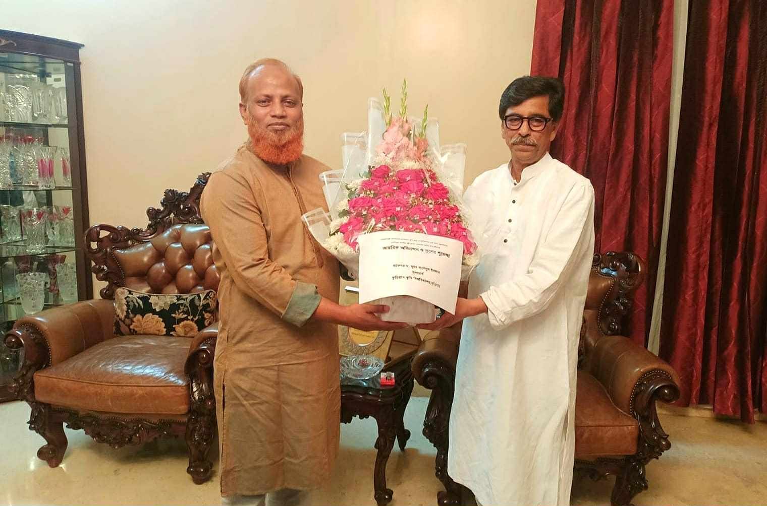 কৃষি, মৎস্য ও প্রাণিসম্পদ এবং খাদ্য মন্ত্রণালয়ের মন্ত্রী মোহাম্মদ আমিন উর রশীদের সৌজন্য সাক্ষাৎ ও শুভেচ্ছা বিনিময় করেছেন কুড়িগ্রাম কৃষি বিশ্ববিদ্যালয়ের উপাচার্য প্রফেসর ড. মুহ. রাশেদুল ইসলাম। গতকাল (সোমবার, ২৩ ফেব্রুয়ারি) তাদের সাক্ষাৎ অনুষ্ঠিত হয়েছে।