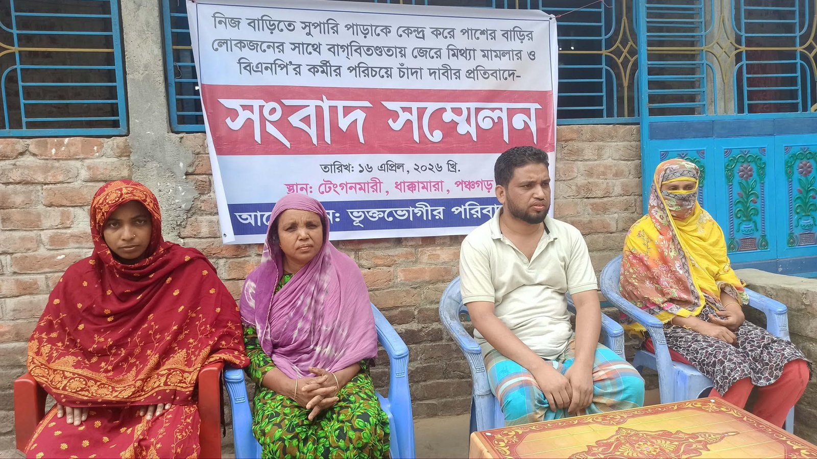 আজ বৃহস্পতিবার দুপুরে সদর উপজেলার ধাক্কামারা ইউনিয়নের টেংগনমারী এলাকায় সংবাদ সম্মেলন করে এসব অভিযোগ করেন ভুক্তভোগী পরিবারের সদস্য ও মামলার প্রধান আসামির দ্বিতীয় ছেলে মাহমুদুর রহমান। এ সময় স্থানীয় লোকজন উপস্থিত ছিলেন।