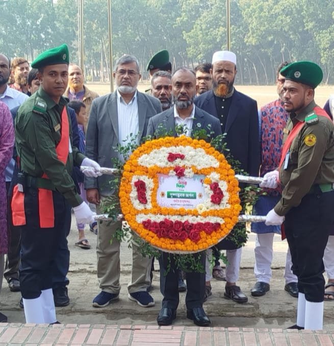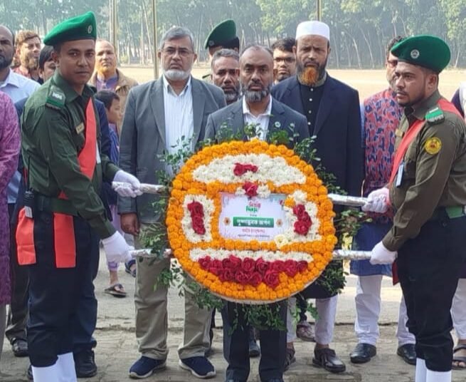 সকালে উপাচার্য প্রফেসর ড. কাজী রফিকুল ইসলামের নেতৃত্বে জামায়াতপন্থী শিক্ষক-কর্মচারী ও শিবিরের স্বল্পসংখ্যক নেতাকর্মী শহীদ মিনারে ফুল দিয়ে শ্রদ্ধা জানান। পরে প্রো-ভিসি প্রফেসর ড. হেমায়েত জাহানের নেতৃত্বে জিয়া পরিষদ, ইউট্যাবসহ বিএনপি পন্থী বিপুলসংখ্যক শিক্ষক-কর্মচারী ও শিক্ষার্থীরা বিজয় র্যালি শেষে শহীদ মিনারে শ্রদ্ধা নিবেদন করেন।