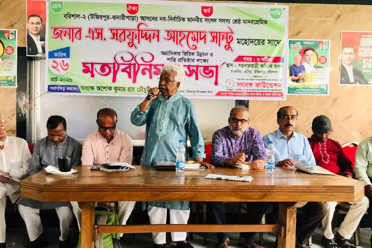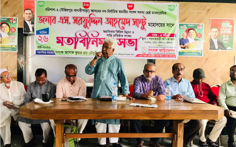 বরিশাল-২ আসনের নবনির্বাচিত সংসদ সদস্য এস সরফুদ্দীন আহম্মেদ সান্টু-এর সাথে অগ্রাধিকারভিত্তিক উন্নয়ন ও শান্তি প্রতিষ্ঠার লক্ষ্যে উজিরপুর উপজেলা সৎসঙ্গ ফাউন্ডেশনের উদ্যোগে এক মতবিনিময় সভা অনুষ্ঠিত হয়েছে।