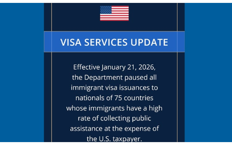 সোমবার, ২ মার্চ, বাংলাদেশসহ কিছু দেশের নাগরিকদের জন্য এক নতুন সিদ্ধান্ত জানানো হয়েছে। যুক্তরাষ্ট্রের পররাষ্ট্র দপ্তর চলতি বছরের ২১ জানুয়ারি থেকে কিছু দেশের নাগরিকদের অভিবাসী ভিসা স্থগিত করেছে। এই দেশের নাগরিকরা যারা যুক্তরাষ্ট্রে বসবাস করতে চাইতেন, তারা এখন সাময়িকভাবে অপেক্ষায় থাকবেন। তবে ভিজিটর ভিসার ক্ষেত্রে এই স্থগিতাদেশ প্রযোজ্য নয়।