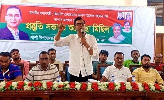 যশোরের শার্শা উপজেলায় প্রধানমন্ত্রী তারেক রহমানের আগমনকে কেন্দ্র করে প্রস্তুতি সভা করেছে বাংলাদেশ জাতীয়তাবাদী স্বেচ্ছাসেবকদল।