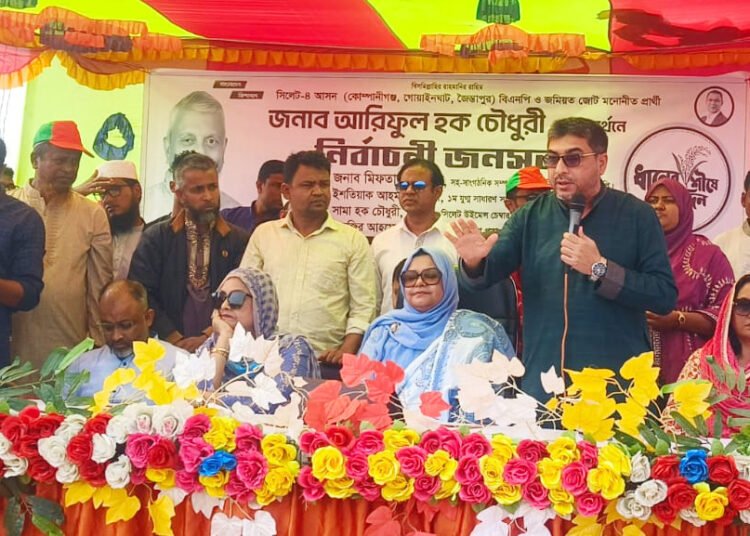 শুক্রবার সকালে গোয়াইনঘাট উপজেলার দক্ষিণ প্রতাপপুর, ঢালার পার, গোয়াইনঘাটে প্রধান অতিথির বক্তব্যে তিনি এসব কথা বলেন।তিনি আরো বলেন, ধানের শীষ কোনো সাধারণ প্রতীক নয়—এটি মানুষের অধিকার, উন্নয়ন ও ন্যায়ের প্রতীক। এই আসনে ধানের শীষের প্রার্থী আরিফুল হক চৌধুরী একজন পরীক্ষিত নেতা, যিনি এই এলাকার সমস্যা বোঝেন এবং সমাধানের সক্ষমতা রাখেন। তাকে বিজয়ী করতে পারলে সিলেট–৪ এর মানুষ তাদের হারানো অধিকার ও মর্যাদা ফিরে পাবে। তাই আমি জৈন্তাপুর, গোয়াইনঘাট ও কোম্পানীগঞ্জের সর্বস্তরের জনগণের প্রতি আহ্বান জানাই—ভোটের দিনে ঘর থেকে বের হয়ে আসুন, ধানের শীষে ভোট দিন, উন্নয়ন, গণতন্ত্র ও ন্যায়ের পক্ষে রায় দিন। এই আসনকে অবহেলা থেকে মুক্ত করতে হলে ধানের শীষের কোনো বিকল্প নেই।