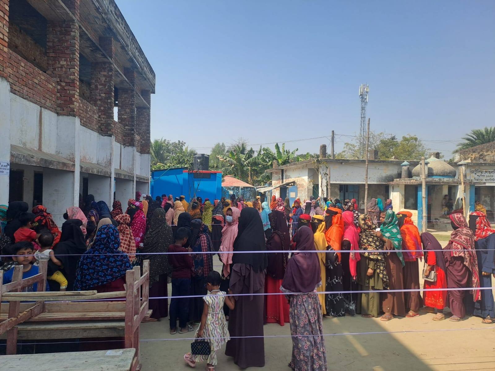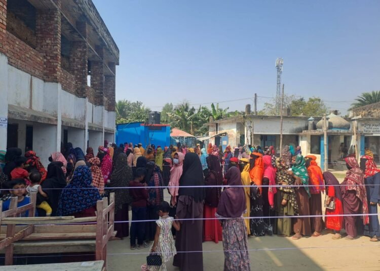সকাল সাড়ে ৭টায় ভোট গ্রহণ কার্যক্রম শুরু হলেও এ সময়ের পূর্ব থেকে ভোটারদের লাইনে দাঁড়াতে দেখা যায়। উপজেলার নকিপুর সরকারি হরিচরণ পাইলট মডেল মাধ্যমিক বিদ্যালয় ভোট কেন্দ্র, ৭৫ নং নকিপুর সরকারি প্রাথমিক বিদ্যালয় ভোট কেন্দ্র, শ্যামনগর মডার্ণ স্কুল, বুড়িগোয়ালিনী ফরেস্ট মাধ্যমিক বিদ্যালয়, খ্যাগড়াদানা সরকারি প্রাথমিক বিদ্যালয় ভোট কেন্দ্র দেখা যায় নারী পুরুষ ভোটারদের দীর্ঘ লাইন এবং শৃঙ্খল পরিবেশে ভোটাররা ভোট প্রদান করছেন। তবে নতুন ভোটারদের মধ্যে এক ধরনের উৎসব আমেজ বিরাজ করছে বেশি।
