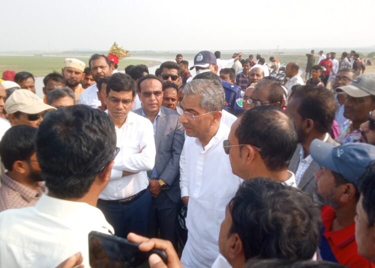 সুনামগঞ্জের মধ্যনগর উপজেলার হাওরের ফসল রক্ষাবাঁধ পরিদর্শন করেছেন বাংলাদেশ সরকারের পানি সম্পদমন্ত্রী শহীদ উদ্দিন চৌধুরী এ্যানি।