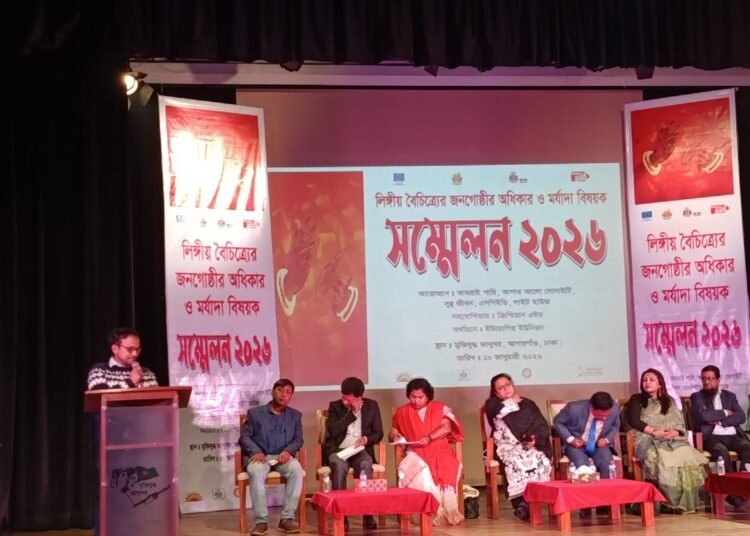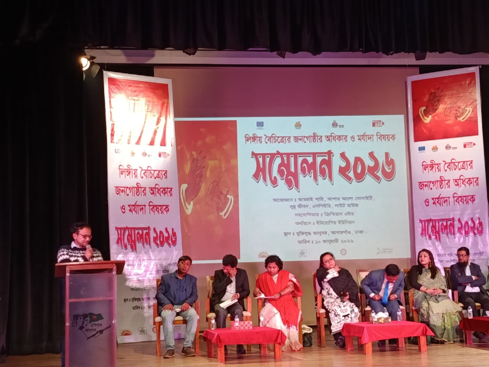 শনিবার (১০ জানুয়ারি) রাজধানীর আগারগাঁওয়ে মুক্তিযুদ্ধ জাদুঘর মিলনায়তনে অনুষ্ঠিত ‘লিঙ্গীয় বৈচিত্র্যের জনগোষ্ঠীর মর্যাদা ও অধিকার বিষয়ক সম্মেলন’-এ বক্তারা এসব কথা বলেন। দেশের ৩৩টি প্রান্তিক সংগঠনের প্রতিনিধিদের অংশগ্রহণে এই মিলনমেলা অনুষ্ঠিত হয়।