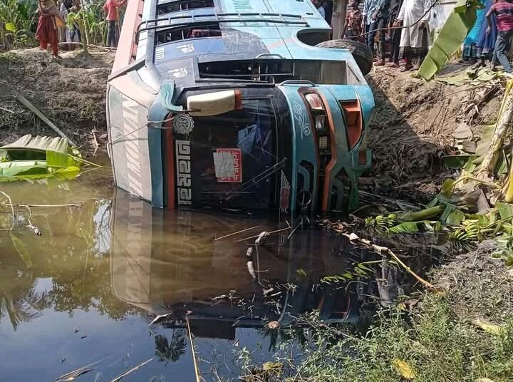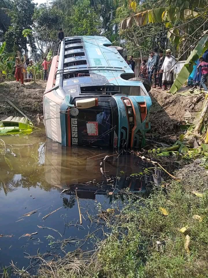 স্থানীয় সূত্রে জানা যায়, বিয়ের অনুষ্ঠানে যোগ দিতে যাওয়া যাত্রীদের নিয়ে বাসটি যাওয়ার সময় চালক নিয়ন্ত্রণ হারিয়ে সড়কের পাশে দুর্ঘটনায় পড়ে। এতে বাসে থাকা কয়েকজন যাত্রী আহত হন বলে জানা গেছে।