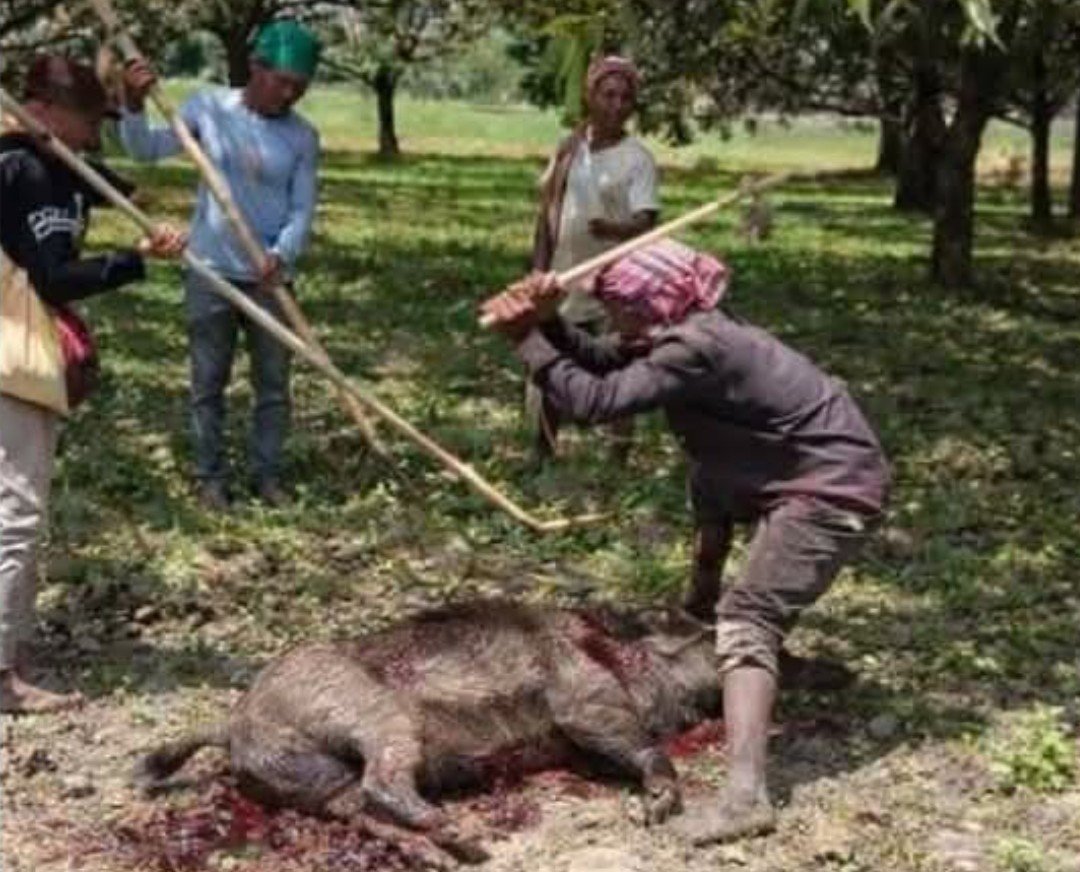 স্থানীয় সূত্রে জানা যায়, বন্য শূকরের আক্রমণে অন্তত সাতজন আহত হওয়ার পর বিষয়টি সামাজিক যোগাযোগমাধ্যম ও বিভিন্ন গণমাধ্যমে ছড়িয়ে পড়ে। পরে রাজশাহীর গোদাগাড়ী থেকে একদল ক্ষুদ্র নৃগোষ্ঠীর শিকারী শূকরটি শিকারে নামে।