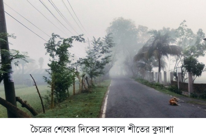 চৈত্র মাসের খরতাপের পরিবর্তে শীতের কুয়াশা দেখা যাওয়া প্রকৃতির এক বিচিত্র ও অস্বাভাবিক রূপ। সাধারণত এই সময়ে কাঠফাটা রোদে জনজীবন অতিষ্ঠ হওয়ার কথা থাকলেও, দেশের বিশেষ করে মনোহরপুর এ চৈত্রেও ঘন কুয়াশার দেখা মিলেছে।