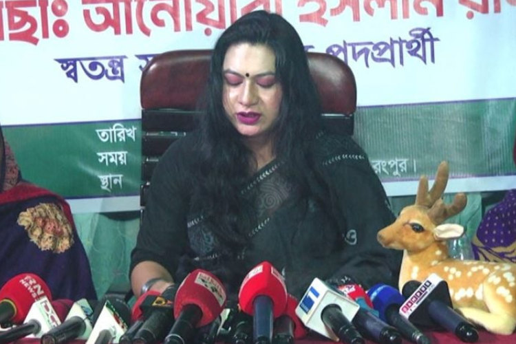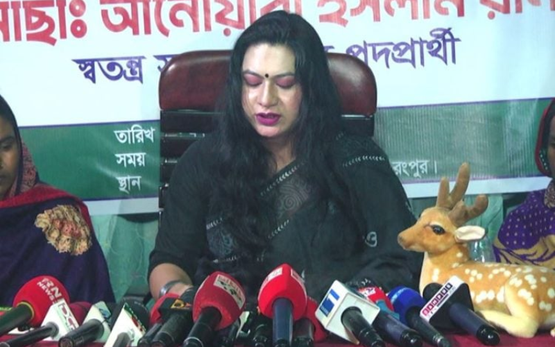রংপুর–৩ আসনে স্বতন্ত্র প্রার্থী তৃতীয় লিঙ্গের আনোয়ারা ইসলাম রানী হিজড়াসহ সকল সুবিধাবঞ্চিত জনগোষ্ঠীর জন্য জাতীয় সংসদে সংরক্ষিত আসনের দাবিতে তার প্রার্থিতা প্রত্যাহারের ঘোষণা দিয়েছেন।
