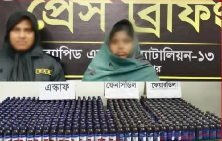 শুক্রবার এক সংবাদ বিজ্ঞপ্তিতে র্যাব-১৩ জানায়, লালমনিরহাটে এক অভিযানে বিপুল পরিমাণ মাদকসহ এক নারী মাদকব্যবসায়ীকে গ্রেপ্তার করেছে। এ সময় তার কাছ থেকে ৫৪২ বোতল বিভিন্ন ধরনের ফেনসিডিল জাতীয় মাদক উদ্ধার হয়।