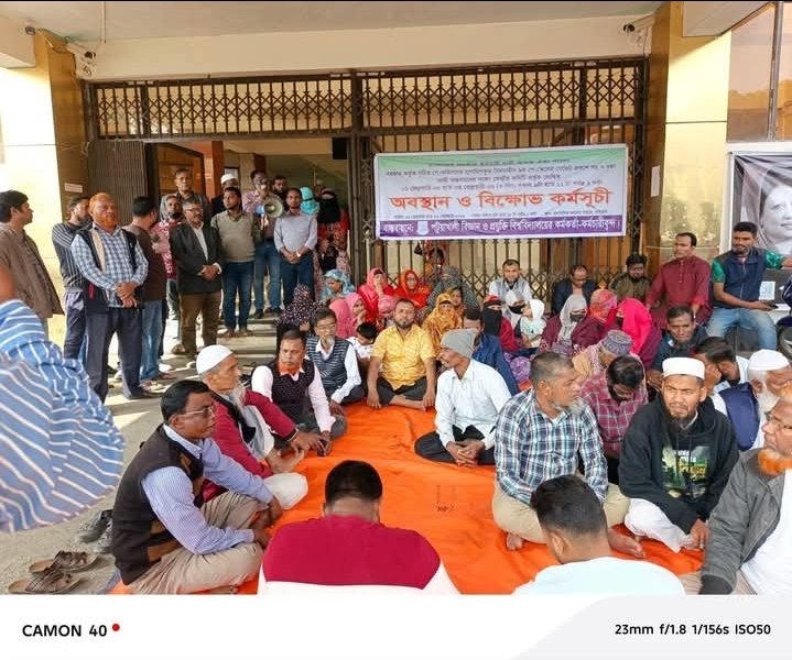 বৈষম্যমুক্ত নবম পে-স্কেলের বাস্তবায়নে ১:৪ অনুপাতে ১২টি গ্রেডে সর্বনিম্ন ৩৫ হাজার টাকা বেতন কাঠামো করে দ্রুত সময়ের মধ্যে নবম পে স্কেলের গেজেট প্রকাশ ও ১লা জানুয়ারি/২৬ থেকে পে-স্কেল বাস্তবায়নের এক দফা দাবি আদায়ের লক্ষ্যে বাংলাদেশ কর্মচারী দাবি ঐক্য পরিষদের ঘোষিত কর্মসূচি মোতাবেক কর্মবিরতি ও অবস্থান ধর্মঘট পালন করেছে পটুয়াখালী বিজ্ঞান ও প্রযুক্তি বিশ্ববিদ্যালয়ের কর্মকর্তা ও কর্মচারীবৃন্দ।