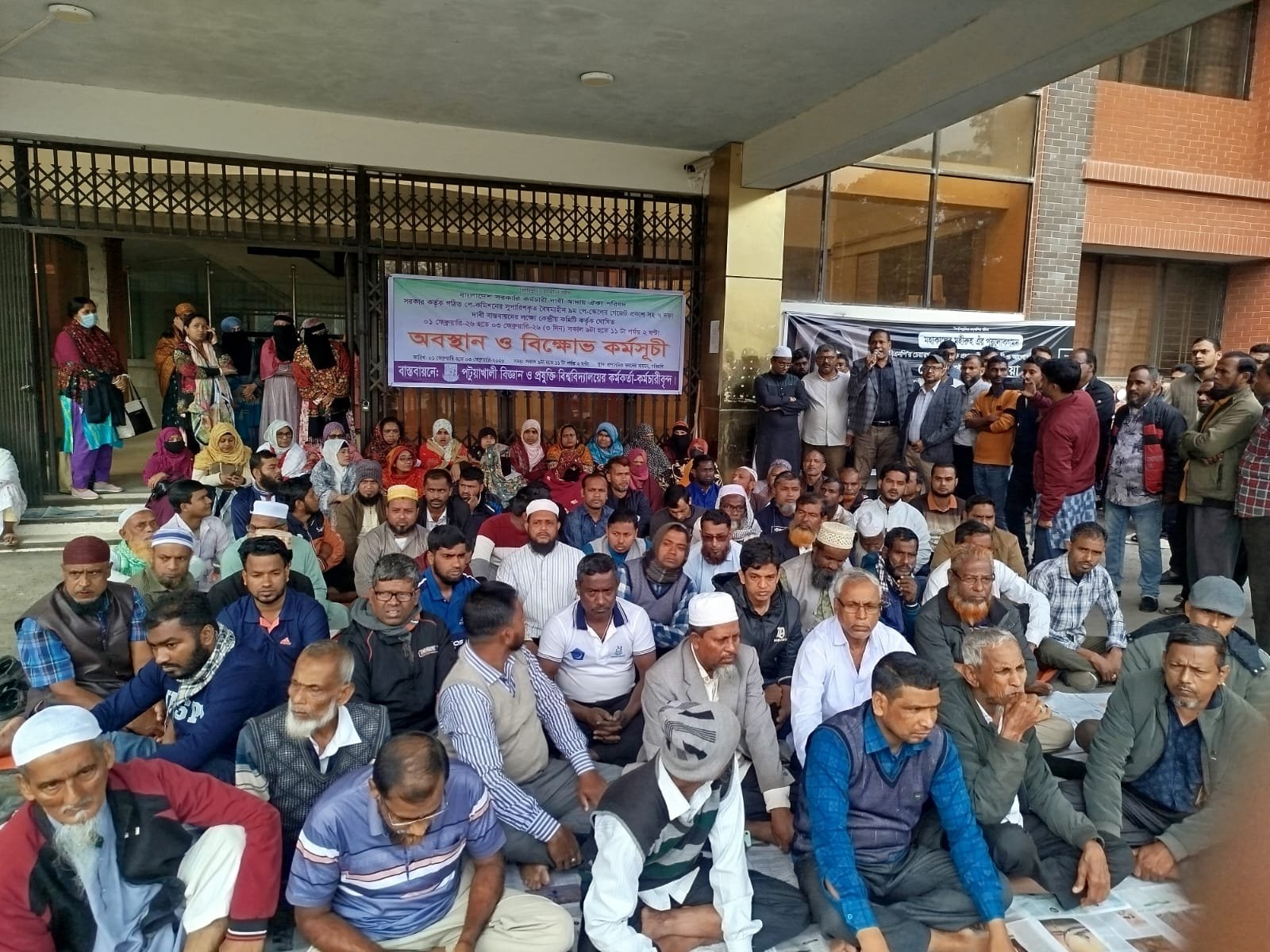 নবম পে-স্কেলের বাস্তবায়নে কর্মবিরতি, অবস্থান ধর্মঘট ও বিক্ষোভ কর্মসূচি ২য় দিন পালন করেছে পটুয়াখালী বিজ্ঞান ও প্রযুক্তি বিশ্ববিদ্যালয়ের কর্মকর্তা ও কর্মচারীরা।সোমবার সকাল ৯টা থেকে প্রশাসনিক ভবনের সামনে কর্মসূচি ও অবস্থান ধর্মঘটে বক্তব্য রাখেন সিনিয়র ডেপুটি ডিরেক্টর মো: মাহফুজুর রহমান সবুজ,জিয়া পরিষদ কর্মকর্তা ইউনিট সভাপতি মো: আবুবকর সিদ্দিক,ডেপুটি রেজিস্ট্রার ড. মো:শফিকুল ইসলাম,মো: মনিরুজ্জামান, সহকারী রেজিস্ট্রার রিয়াজ কাঞ্চন শহীদ, কর্মচারী মো: পিয়েল মৃধা, মোশারেফ হোসেন,আলমগীর হোসেন আলম,আবু মুছা,মাসুম বিল্লাহ।