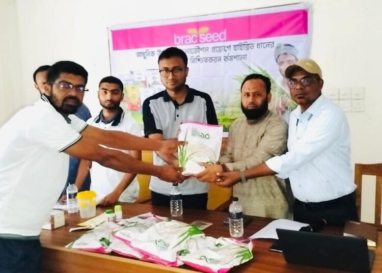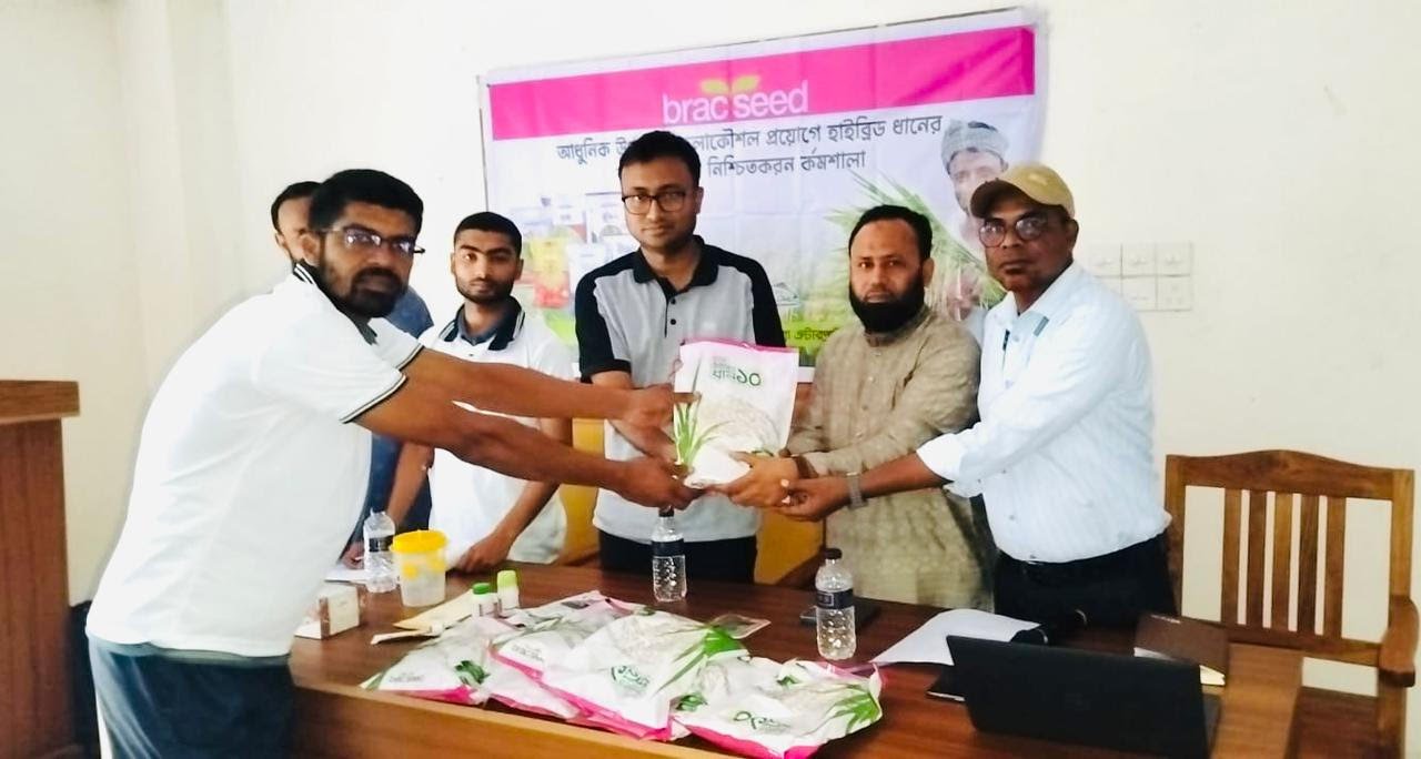 অনুষ্ঠান শেষে অংশগ্রহণকারী কৃষকদের মাঝে হাইব্রিড ব্র্যাক-১০ জাতের ধান বীজ বিতরণ করা হয়।