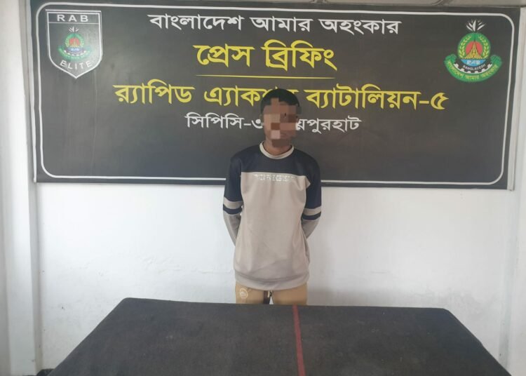 এরই ধারাবাহিকতায় গত ২৯ মার্চ ২০২৬ তারিখ দুপুর আনুমানিক ২টা ১০ মিনিটে র্যাব-৫, সিপিসি-৩ এবং র্যাব-১৩ এর একটি যৌথ দল জয়পুরহাট জেলার পাঁচবিবি থানাধীন ত্রিমোহনী এলাকা থেকে মামলার এজাহারভুক্ত আসামি মিশন হাসদা টেক্কা (২২)-কে গ্রেফতার করে।