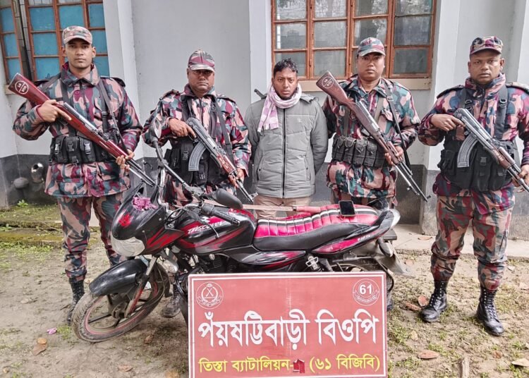 শনিবার ভোরে পাটগ্রাম উপজেলায় ৬১ বিজিবি তিস্তা ব্যাটালিয়নের অধীনস্থ পঁয়ষট্টিবাড়ি বিওপির একটি টহল দল সীমান্তে অভিযান পরিচালনা করে দেশীয় অস্ত্র সহ আতিক হাসানকে (২৫) আটক করে। আটককৃত আতিক পাটগ্রাম থানা পশ্চিম শাখা ছাত্রশিবিরের বহিষ্কৃত সাবেক সভাপতি ও পাটগ্রাম উপজেলার সীমান্তপাড়া নামক এলাকার বজলার রহমানের ছেলে।