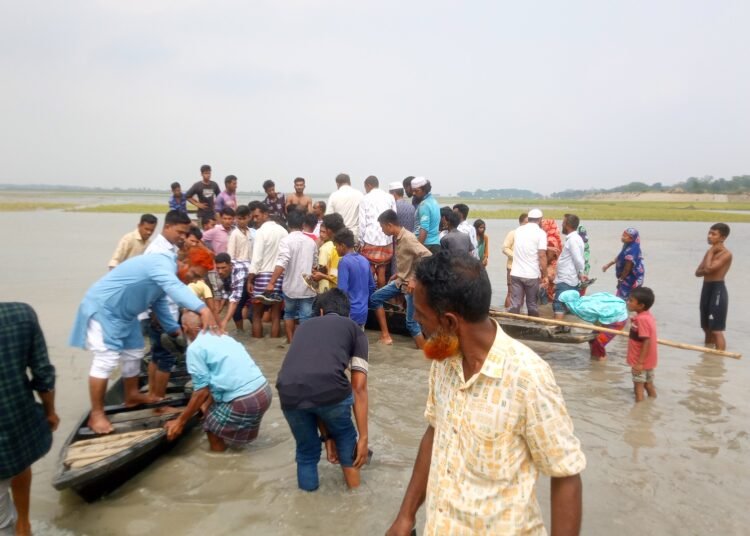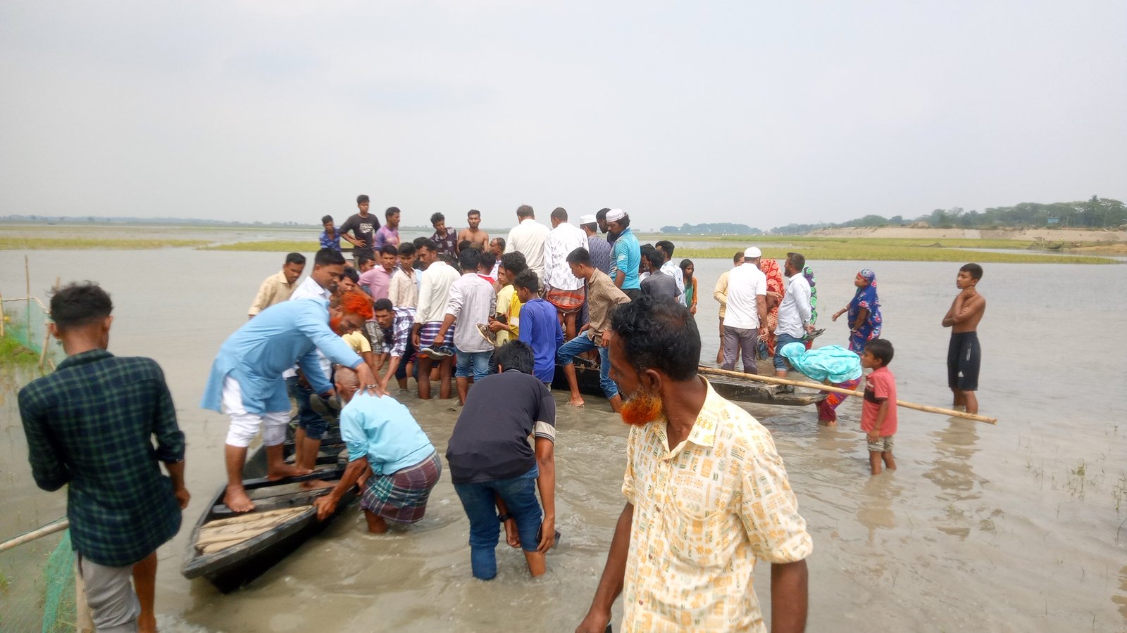 রোববার (১২ এপ্রিল) সকাল ১১টার দিকে মধ্যনগর বোয়ালার হাওরের শোল ডুয়ারী জাঙ্গাল এলাকায় এ দুর্ঘটনা ঘটে।