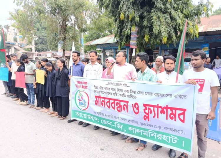 তিস্তা মহাপরিকল্পনা বাস্তবায়নের প্রতি সংহতি জানিয়ে তরুণদের সংগঠন জেন-জি লালমনিরহাট লালমনিরহাটের মিশন মোড়ে আয়োজন করে মানব বন্ধন ও ফ্লাস মব। এই ব্যতিক্রমী কর্মসূচির