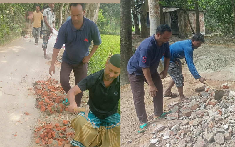 জনসাধারণের এই ভোগান্তি দেখে চুপ করে বসে থাকতে পারেননি স্থানীয় তরুণেরা। কাইয়ুম খান চৌধুরী, বশির, পলাশ, আকরাম, আশিক, সুমন ও মানিকের নেতৃত্বে যুবসমাজ ঐক্যবদ্ধ হয়ে সংস্কারের দায়িত্ব কাঁধে তুলে নেন। তারা নিজেদের উদ্যোগে ইট, বালু ও কংক্রিট সংগ্রহ করে সড়কের ক্ষতিগ্রস্ত অংশগুলো ভরাট ও মেরামত করেন।